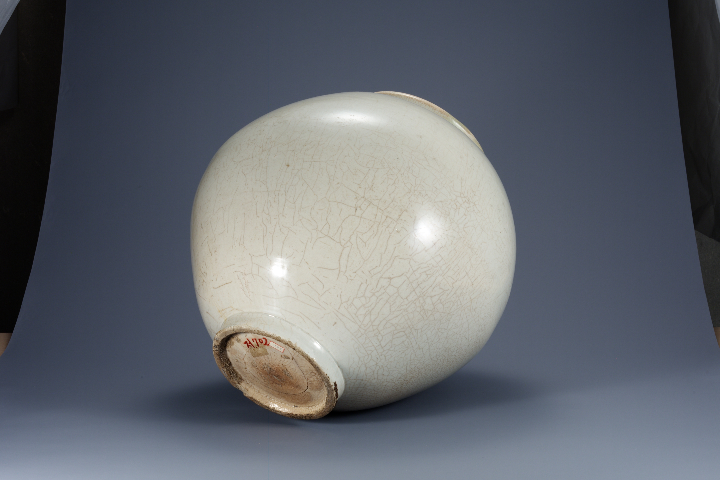 이 백자 달항아리는 17세기 후반부터 그와 유사한 형태의 도자기들이 출토되며, 이후 18세기 조선 영조와 정조 시대에 본격적으로 제작된 것으로 알려져 있습니다. 주로 경기도 광주 분원의 관요(官窯)에서 만들어졌으며, 왕실이나 고위 관료층의 의례, 행사, 또는 장식용으로 사용되었습니다.