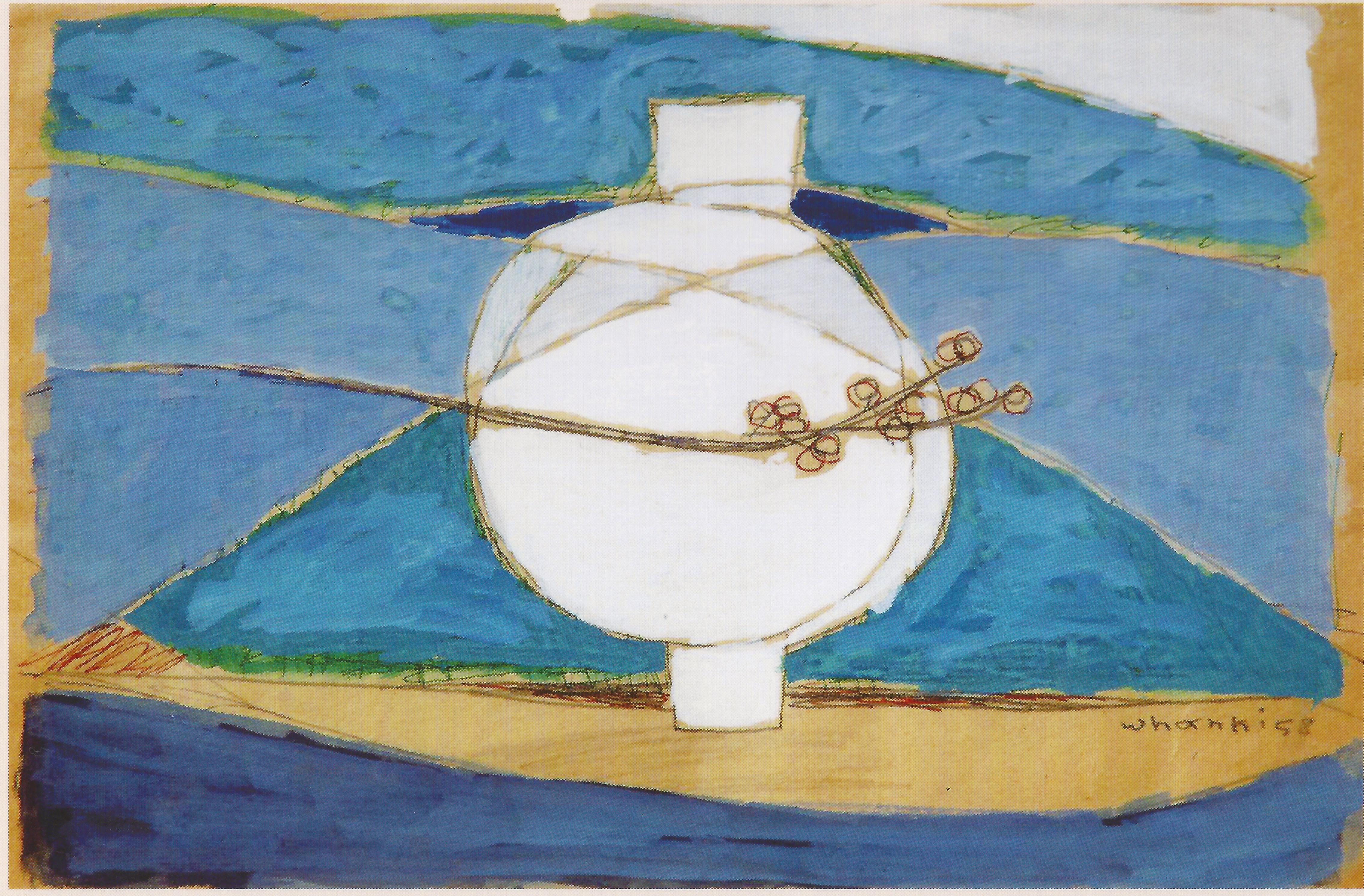 달항아리 하면 빼놓을 수 없는 인물이 바로 김환기 화백입니다. 한국 추상미술의 개척자이자 세계적으로 사랑받는 작가인 그는 1950년대부터 정물화에 달항아리를 등장시켰습니다. 항아리와 매화, 항아리와 시, 항아리와 꽃이 함께 어우러진 그의 그림은 조선 백자의 고요한 정신을 담아내며, 동양적 정서와 서양 회화의 균형을 완성했습니다. 단순히 그 형태를 묘사한 것이 아니라, 달항아리가 지닌 철학, 여백, 절제의 미까지 담아낸 그의 화폭은 조용한 감동을 줍니다. 특히 항아리와 매화가 나란히 놓인 구도는 김환기만의 감성과 계절감을 함께 전하며, 지금까지도 수많은 이들의 사랑을 받고 있습니다.