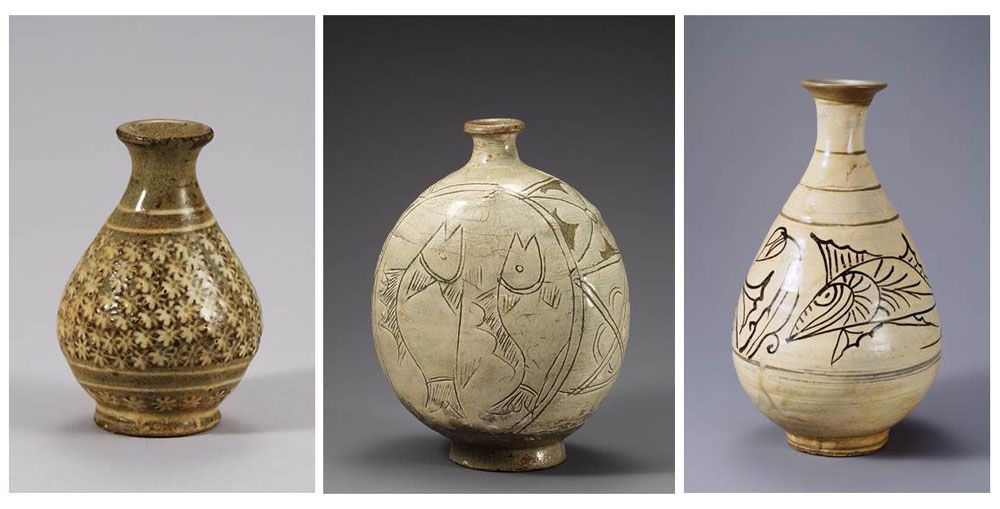 초기의 분청사기는 청자의 유약과 기법을 계승했지만, 점차 조선의 현실감 있는 미의식이 더해지며 새로운 형태로 발전했습니다. 백토를 바르고 긁어 무늬를 내는 ‘귀얄분청’, 무늬를 새겨 그 안에 백토를 메우는 ‘상감분청’, 도장을 찍어 장식하는 ‘인화분청’, 자유롭게 선을 그려 넣은 ‘철화분청’ 등 다양한 기법이 등장했습니다. 그중 귀얄과 철화는 특히 조선적인 소박함과 힘 있는 선의 미를 보여주는 대표적인 양식입니다.